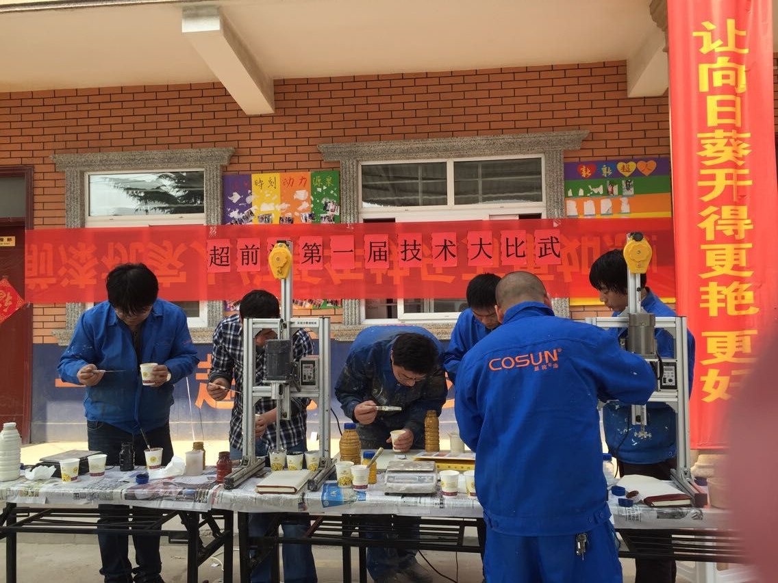 從一點開始一直到三點半才結(jié)束,幾位超前的超人們也都調(diào)配出自己滿意的外墻多彩漆樣板,交出滿意的答卷。以后,超前涂料會經(jīng)常舉行這樣的比賽活動,調(diào)動超人們的學(xué)習(xí)精神,給客戶提供更好的服務(wù),也請各位客戶多多關(guān)注我們超前http://www.sugar-soft.com